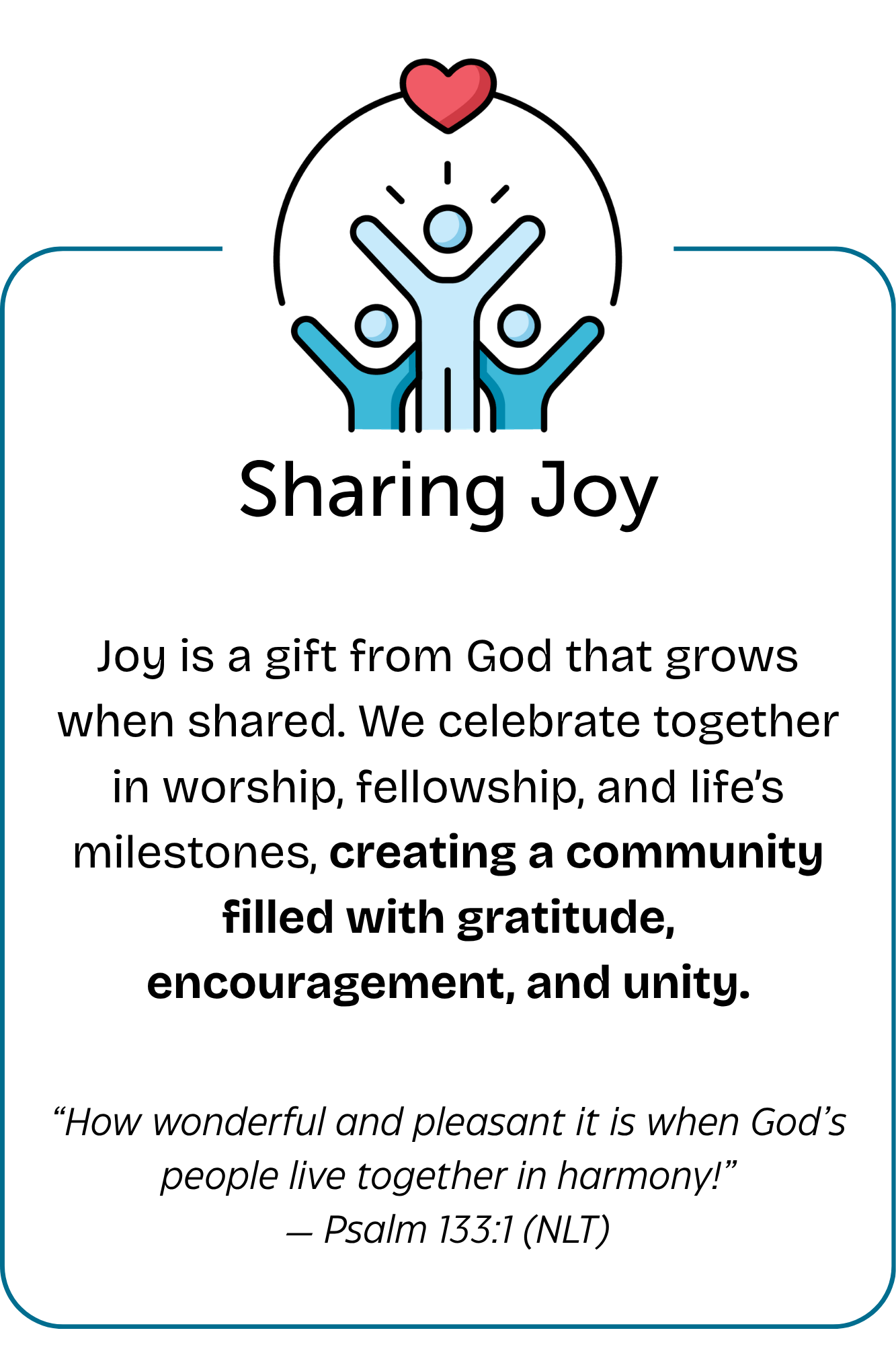 Faith is strengthened in community. Through meaningful relationships and Small Groups, we walk alongside one another, offering encouragement, accountability, and spiritual growth.